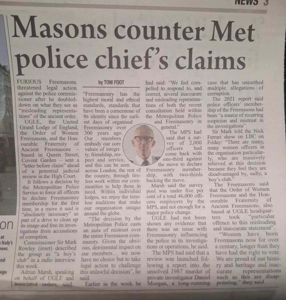 This problem would go away if the public knew how many of the police’s masons are male and how many are female.